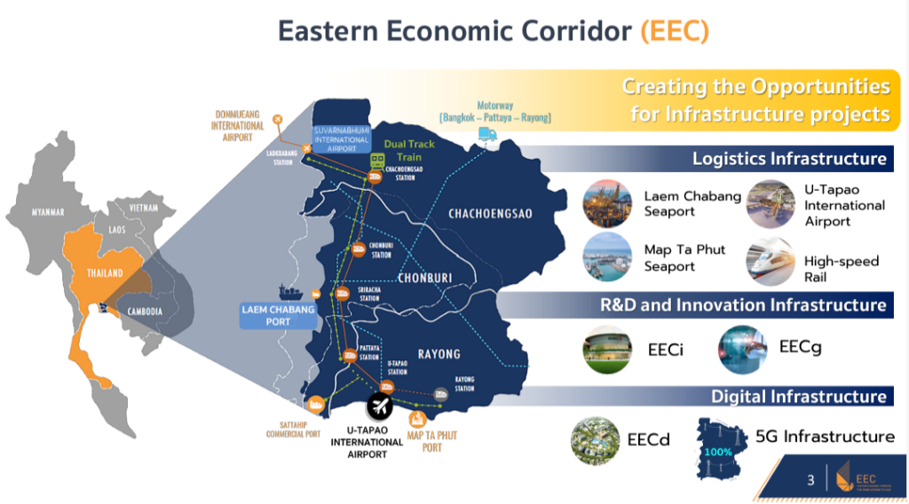 EEC คือ โครงการภายใต้พระราชบัญญัติเขตพัฒนาพิเศษภาคตะวันออกที่ประกาศเริ่มใช้ในปี 2561 ย่อมาจาก Eastern Economic Corridor ซึ่งมีอีกชื่อเป็นภาษาไทยว่า “โครงการพัฒนาระเบียงเศรษฐกิจพิเศษภาคตะวันออก” โครงการนี้ส่งผลหลายประการต่อเศรษฐกิจในภาคตะวันออกของประเทศไทย แน่นอนว่าวงการอสังหาริมทรัพย์ก็เป็นส่วนหนึ่งในนั้น