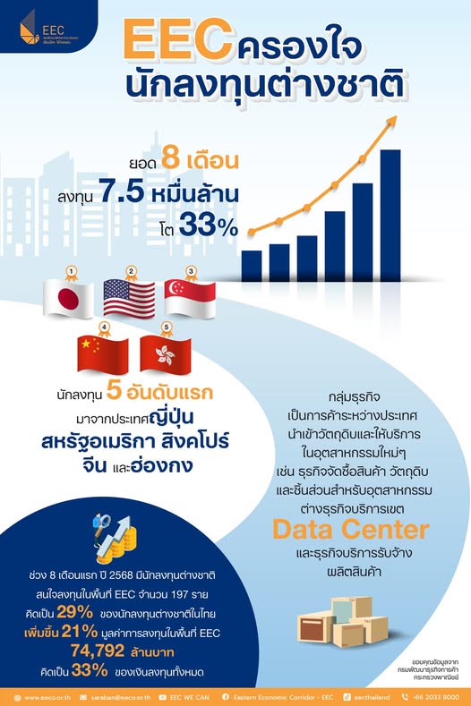 “เราเริ่มเห็นความชัดเจนมากขึ้นจากการที่ กฟผ. อนุมัติงบฯลงทุนเพื่อพัฒนาระบบสายส่งไฟฟ้าในอีอีซี ซึ่งถือเป็นโครงสร้างพื้นฐานสำคัญที่จะรองรับการขยายตัวของภาคอุตสาหกรรมและการลงทุนใหม่ ๆ ในอนาคต”