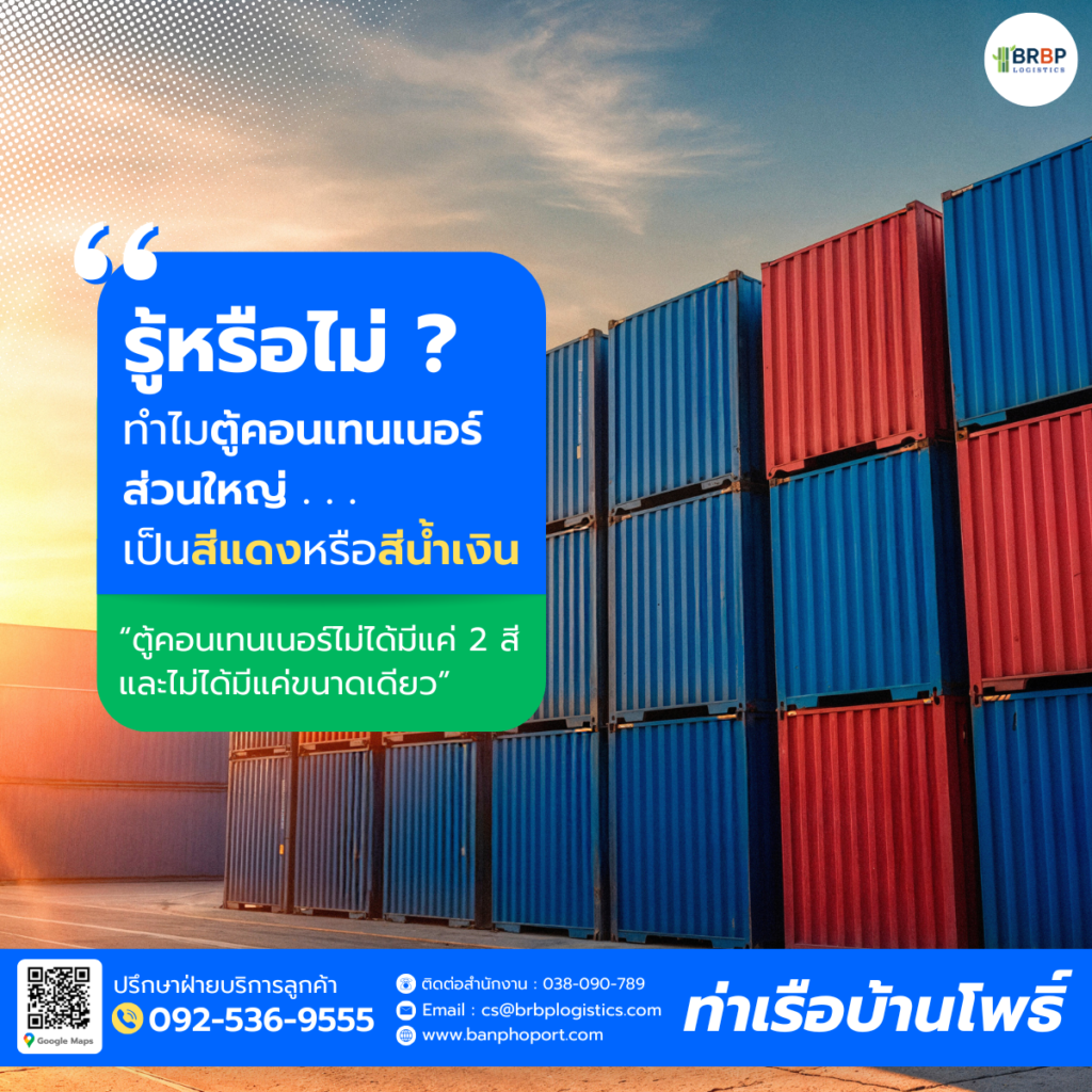 สีของตู้คอนเทนเนอร์ไม่ได้ถูกเลือกมาเพียงเพื่อความสวยงาม แต่เป็นการผสมผสานระหว่าง “ฟังก์ชัน” และ “การตลาด” อย่างลงตัว ไม่ว่าจะเป็นการทนต่อสภาพอากาศ การช่วยพรางคราบสกปรก หรือการสร้างการจดจำแบรนด์