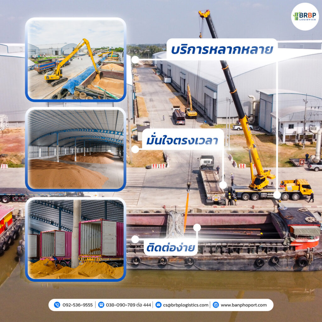 ท่าเรือบ้านโพธิ์ ให้บริการเรือลำเลียงสินค้าบนลุ่มแม่น้ำบางปะกง พร้อมทั้งการบริการท่าเทียบเรือบางปะกง คลังสินค้า เครื่องมือ และอุปกรณ์ต่างๆ ที่ครบครัน ด้วยความร่วมมือจากกลุ่มพันธมิตรที่เข้มแข็งที่พร้อมให้บริการสนับสนุนกิจกรรมการลำเลียงสินค้าทางน้ำ ทำให้มั่นใจได้ว่าสินค้าของลูกค้าจะถูกส่งไปถึงปลายทางด้วยความปลอดภัยและตรงเวลา และเรายังมีบริการท่าเรือขนถ่ายสินค้าข้างเรือโป๊ะ บริการคลังสินค้าให้เช่า ครบจบในที่เดียว ด้วยมาตรฐานการทำงาน ISO9001:2015 และ GMP+ Feed Safety เพื่อให้คุณลูกค้าได้มั่นใจในการให้บริการทุกระดับ